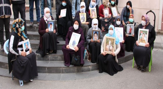 Çocuklarının terör örgütü PKK mensupları tarafından dağa kaçırıldığı iddiasıyla HDP Diyarbakır İl Başkanlığı önünde oturma eylemi başlatan ailelerin evlat nöbeti 450’nci gününe girdi.