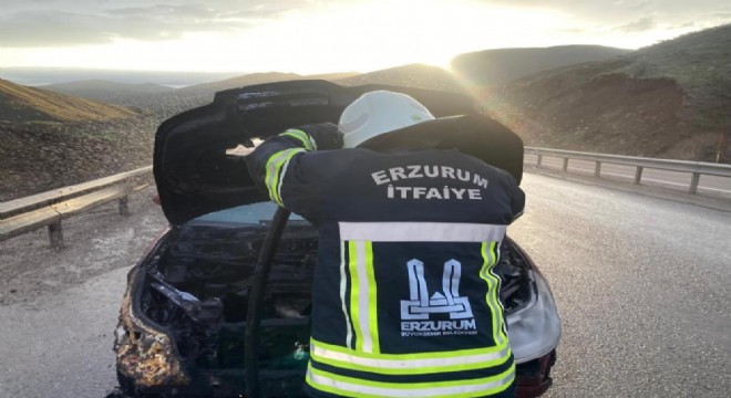 Aşkale ilçesinde seyir halindeki otomobil yandı.