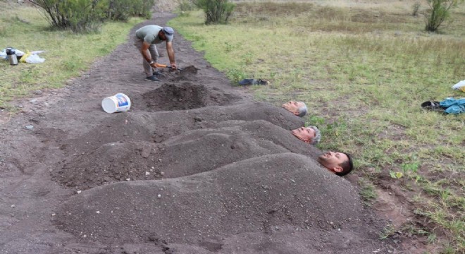 Oltu ilçesine bağlı Ejder deresinin kumlarını değerlendiren Oltulular, yıl da 3-4 kez bu kuma girmenin kış hastalıklarından koruduğunu öne sürüyorlar.